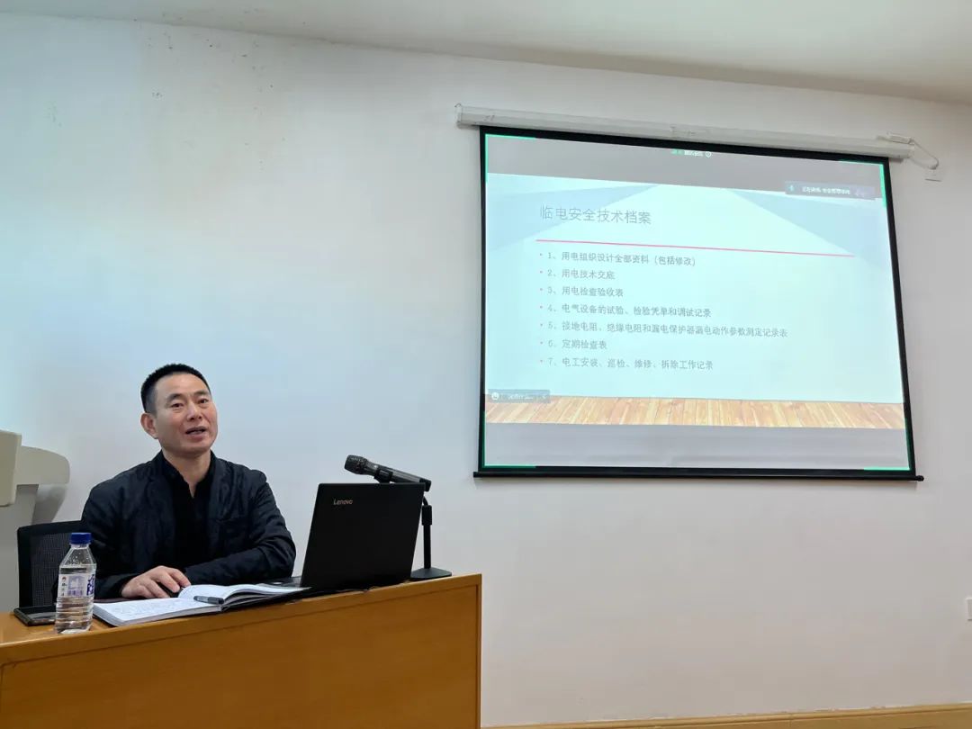 陈庆君副总经理围绕宁静知识、宁静意识、宁静意愿、临时用电等方面,通过详实的数据和事例,深入讲解了宁静与每名员工息息相关的原理,详细解读了施工临时用电治理要求,强调了宁静生产意识的重要意义。