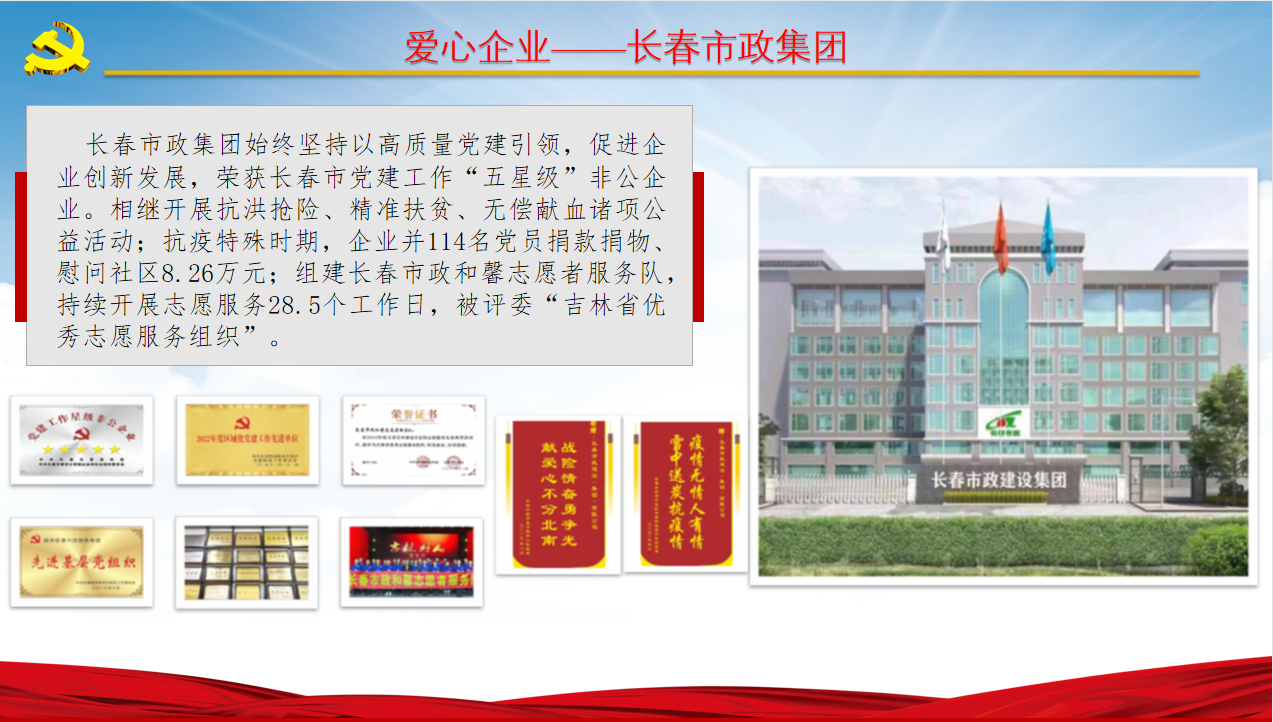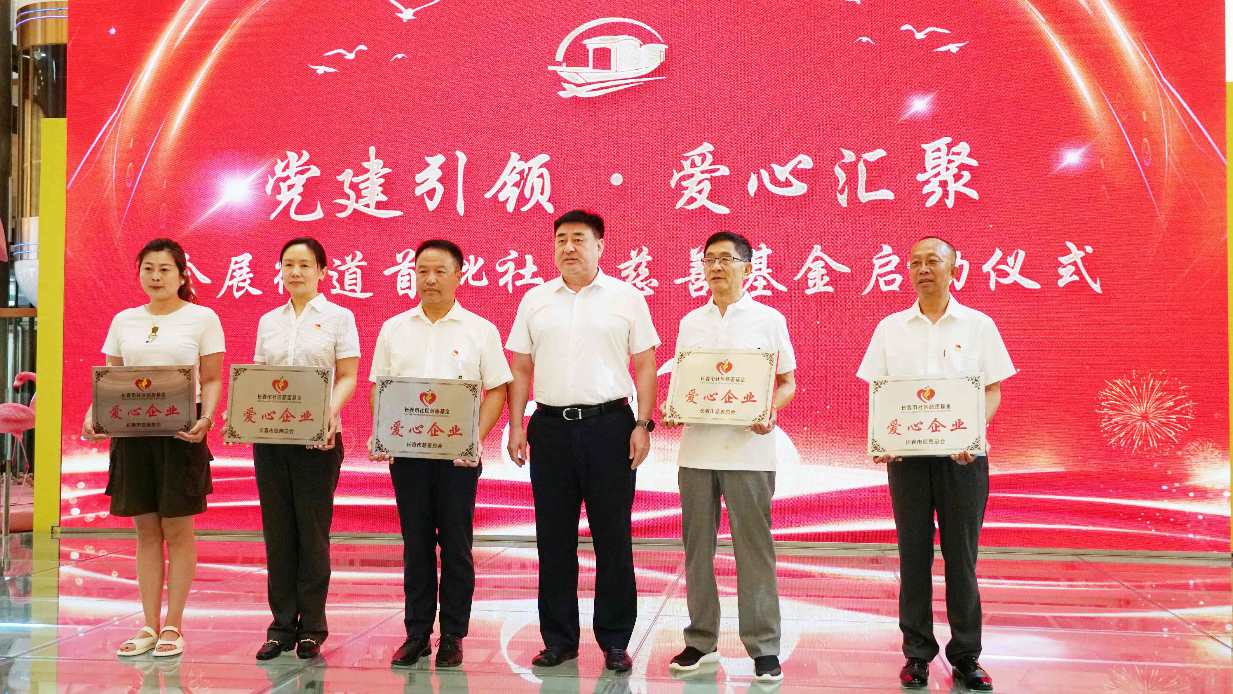 集团公司等五家企业加入爱心慈善一万元捐助,长春市慈善会为“爱心企业”授牌,宣布捐赠证书。